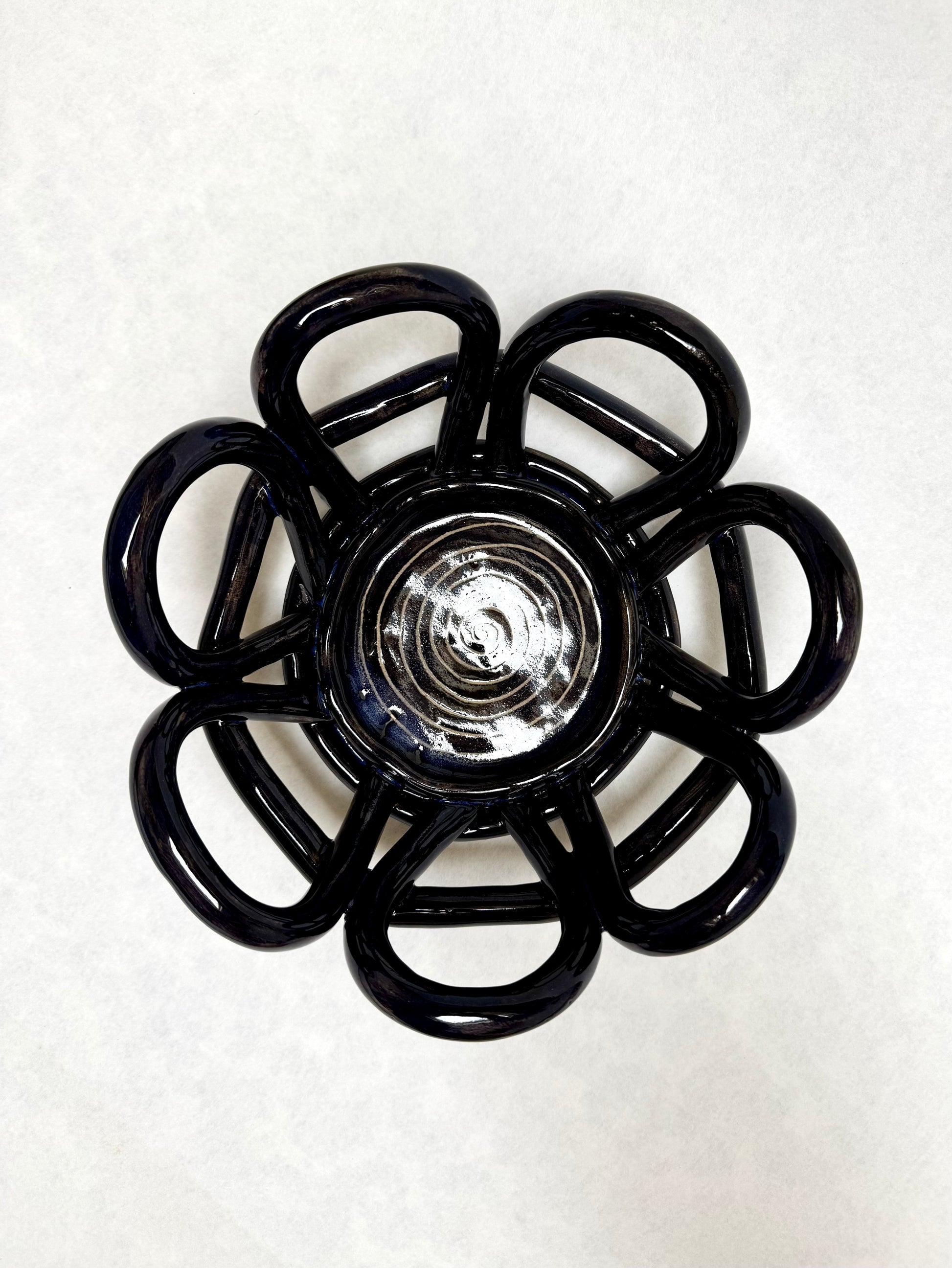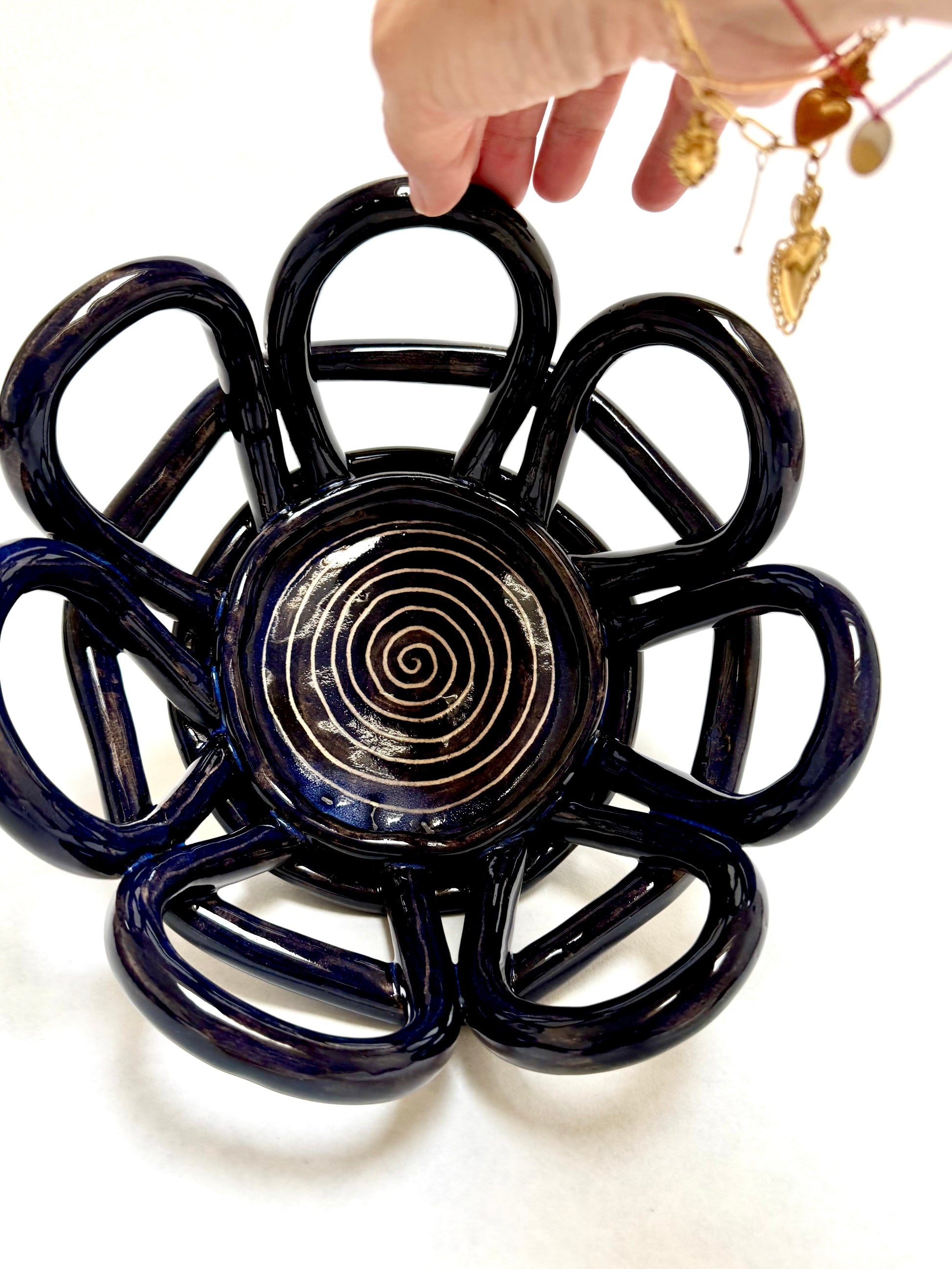 Décor noir, reflets bleu nuit , émail transparent