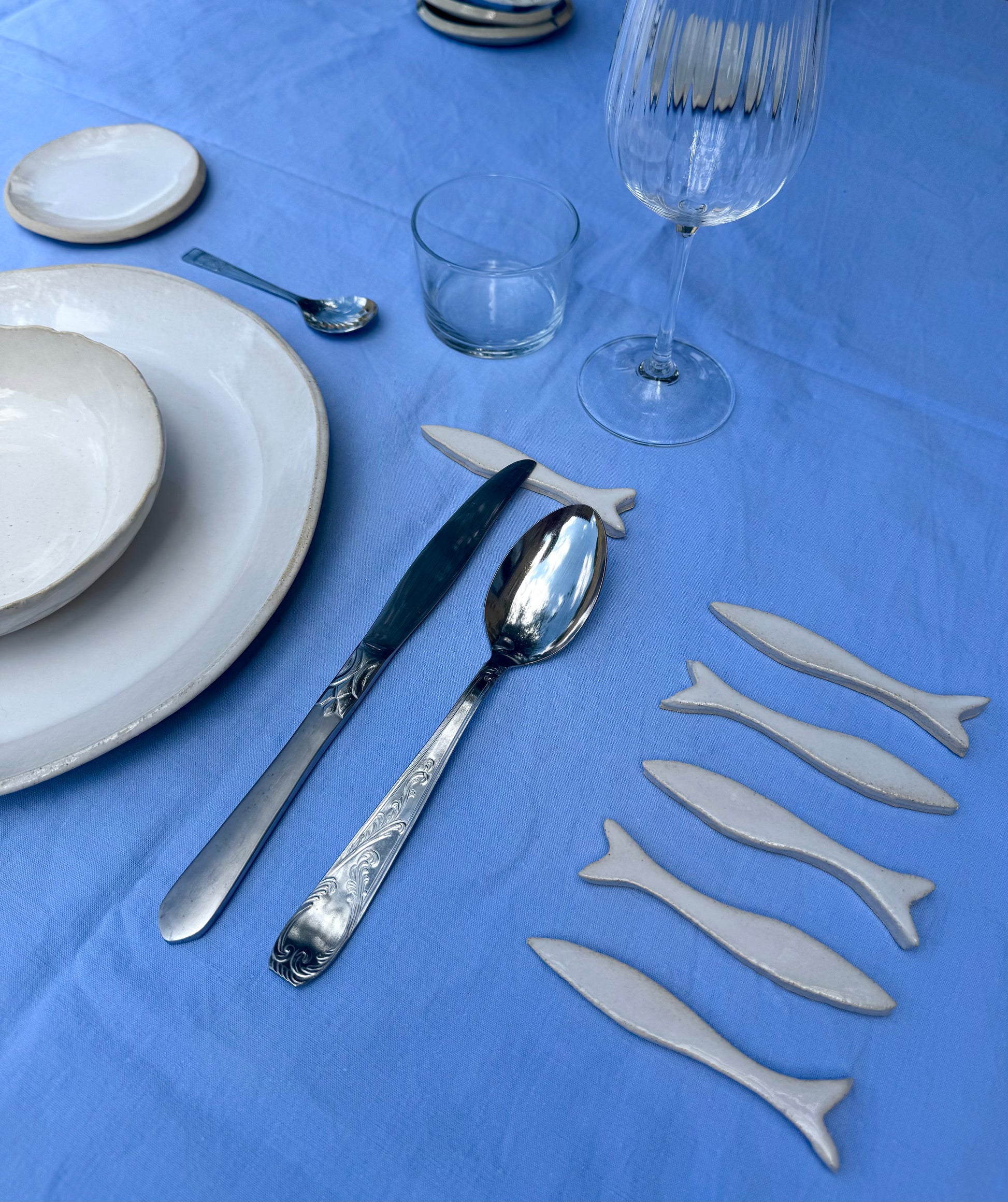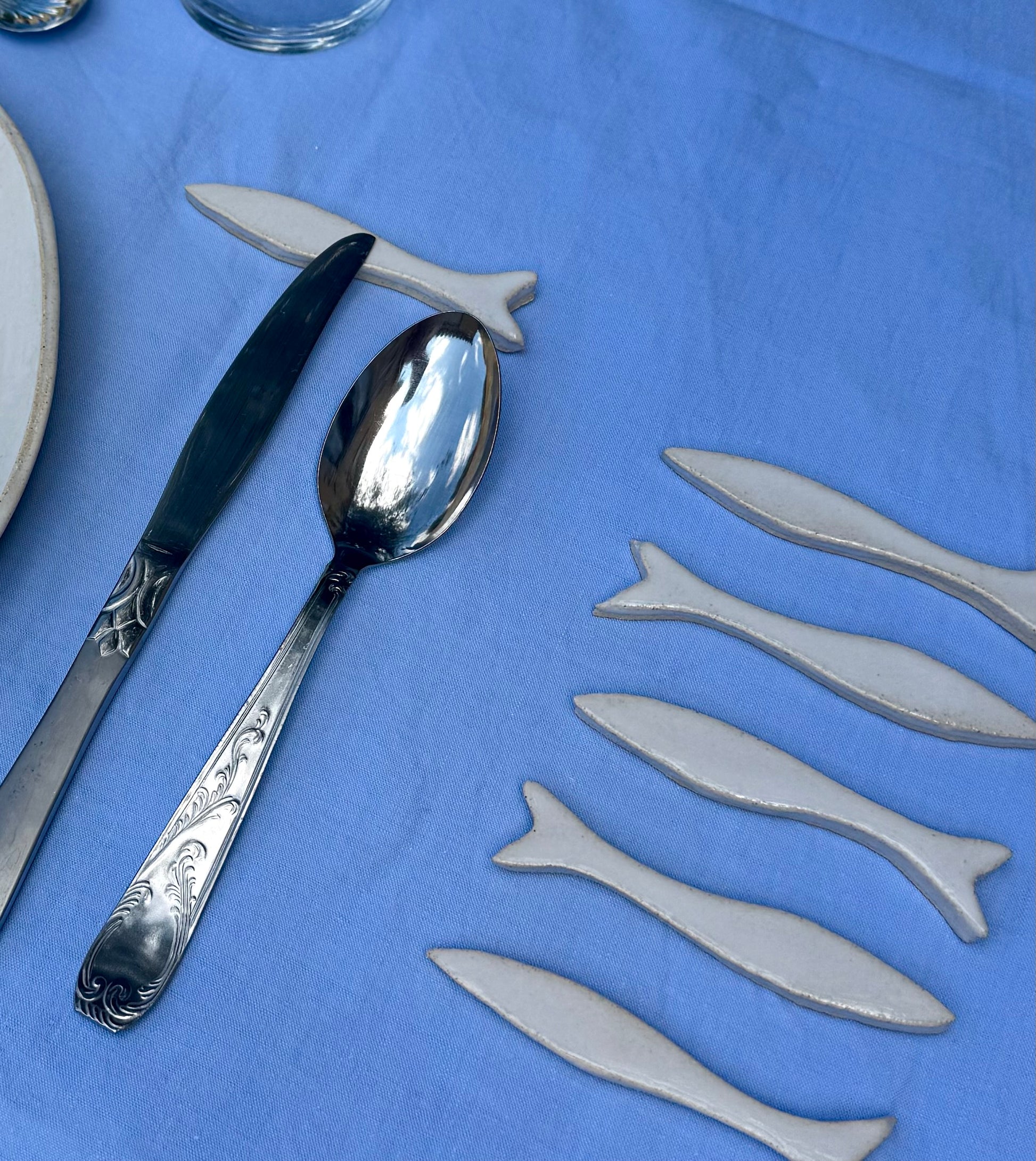 Directement inspirés du monde marin, ces portes couteaux évoquent les bancs d'anchois et de sardines.